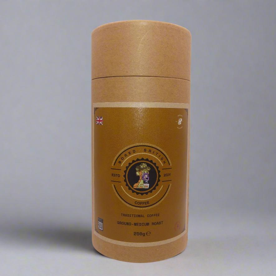 Get ready for a quirky and playful wake-up call with Bored British Traditional Coffee. Made with premium Arabica beans from Colombia and Kenya, this medium roast offers a quintessentially British experience. From Crypto OG's who has been "To The Moon", it's a perfect way to start your day (and maybe even inspire a few adventures in web3).